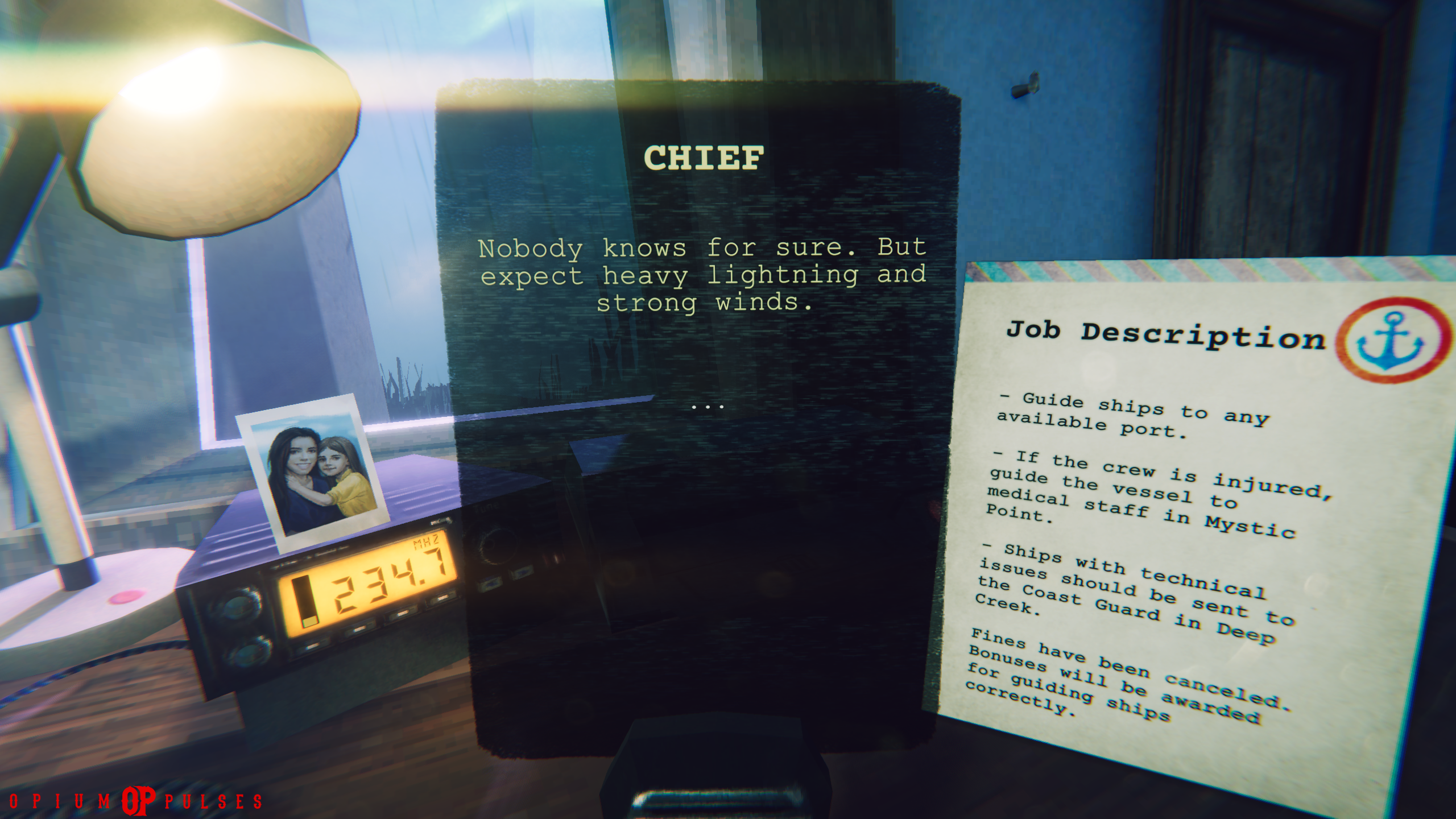 In a style very similar to Papers Please, take the role of the Lighthouse Keeper, and help ships reach the desired destination. Make sure they are who they say they are, and that they're not taking part in anything suspicious, from illicit movement of substances to .... Cult Related Activities? As the game progresses, the exact specifications of what you need to do, what to look for, and info to cross reference and deduce changes and grows over time. That being said, keep an eye out- and be mindful of details. While you initially may be cross communicating with the mainland, you also have to keep tabs on your family, the locals and even more as you progress. Things get a little complicated to say the least.