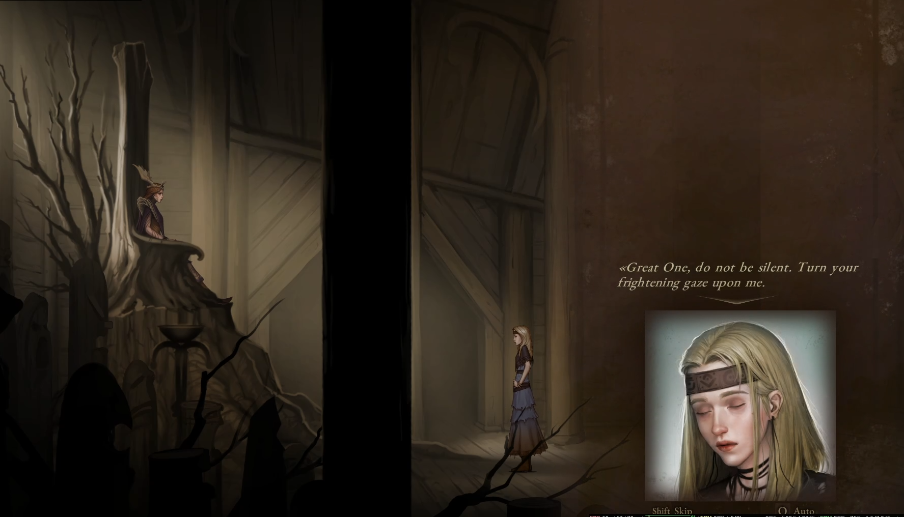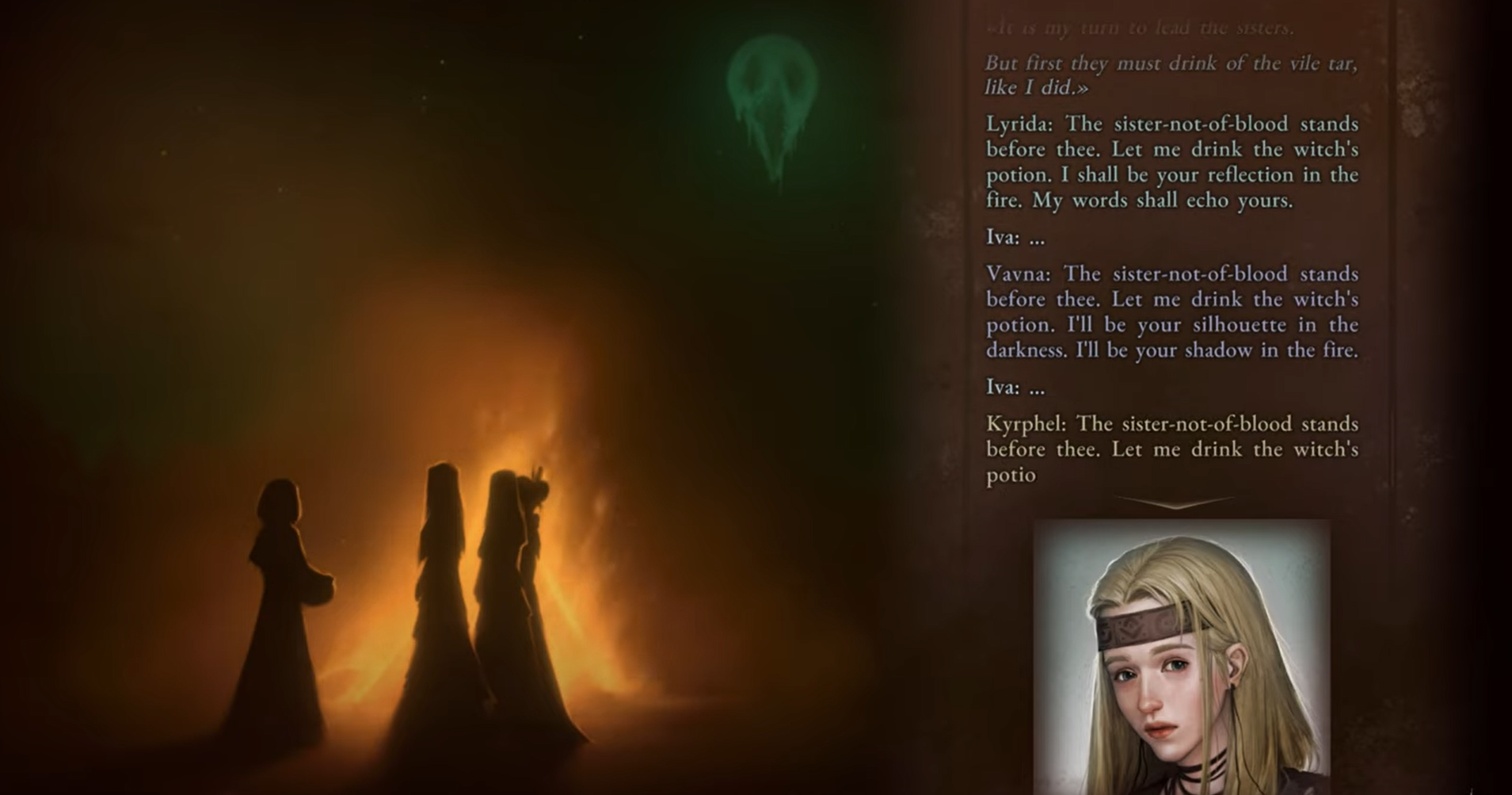 You are a young witch, Kyrphel, and later in the story, you will share the perspective with a second protagonist that will be revealed in a turn of events. You are part of a covenant of Witches holding a terrible ritual unbeknownst to the rest of the villagers that will decide the demise of them all or their salvation. Even if they are highly discriminated by the same society they are trying to save. Right from the beginning Littlegrave a lovely, charismatic girl, the most dear friend of our protagonist, will tell you about how her promised husband died mauled by the wolves and that she herself carried him to his grave without losing her bright smile. We accompany Littlegrave to do her duty as a priestess from the Goddess of Earth, the one that most guarantee "The Circle" continues by her scythe. No child is allowed to grow older than 19 and they had followed the same tradition since they can remember. This world is also haunted by spirits in every corner, and if you decide to engage with them, well something interesting might happen. But as the spectator you start wondering when the lines between the children's innocence, crude reality, strange concoctions that might have dubious effects and magic start to blur... What could be the outcome? The process of discovering it drew me in.