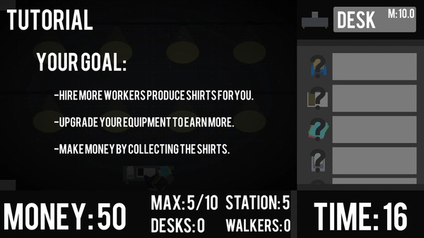 One day you decide to change your life and open up new business related to the production of clothing. Dark basement, which do not penetrate the sun's rays, cheap tables from KIEA and bought on sale of equipment that barely works. Only hard work separates you and your employees from wealth and fame now. What are you waiting for?