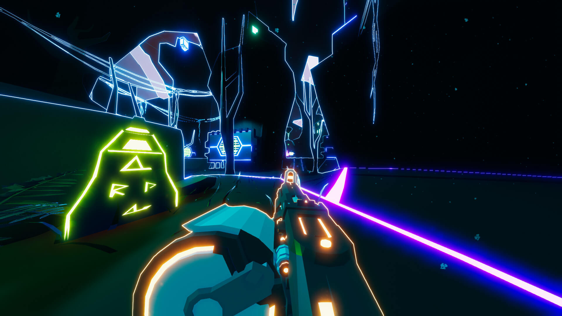 Get To The Orange Door is an intense parkour platforming FPS set in an 80's-inspired retrofuturist world. With a mix of classic and modern first person shooter mechanics, launch yourself gun-first into a neon synthwave virtualscape as you wall run, slide, clamber, and dash around each level at supersonic speeds.